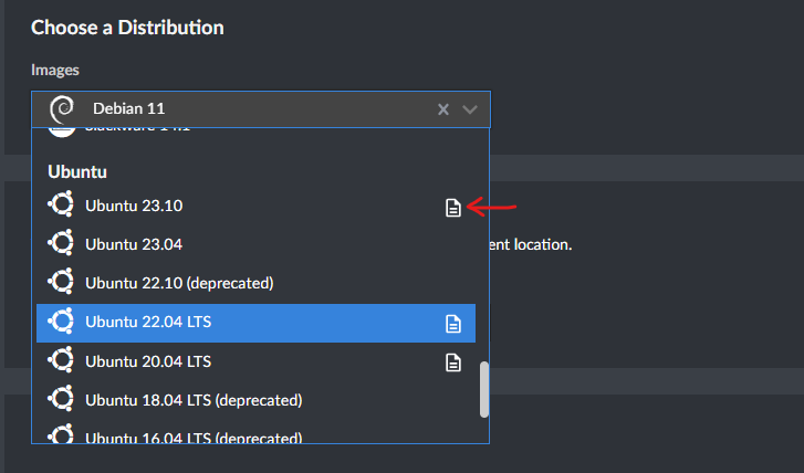 Make sure to select a distribution which support cloud-init! Those are indicated by a "file" icon next to the distro name.